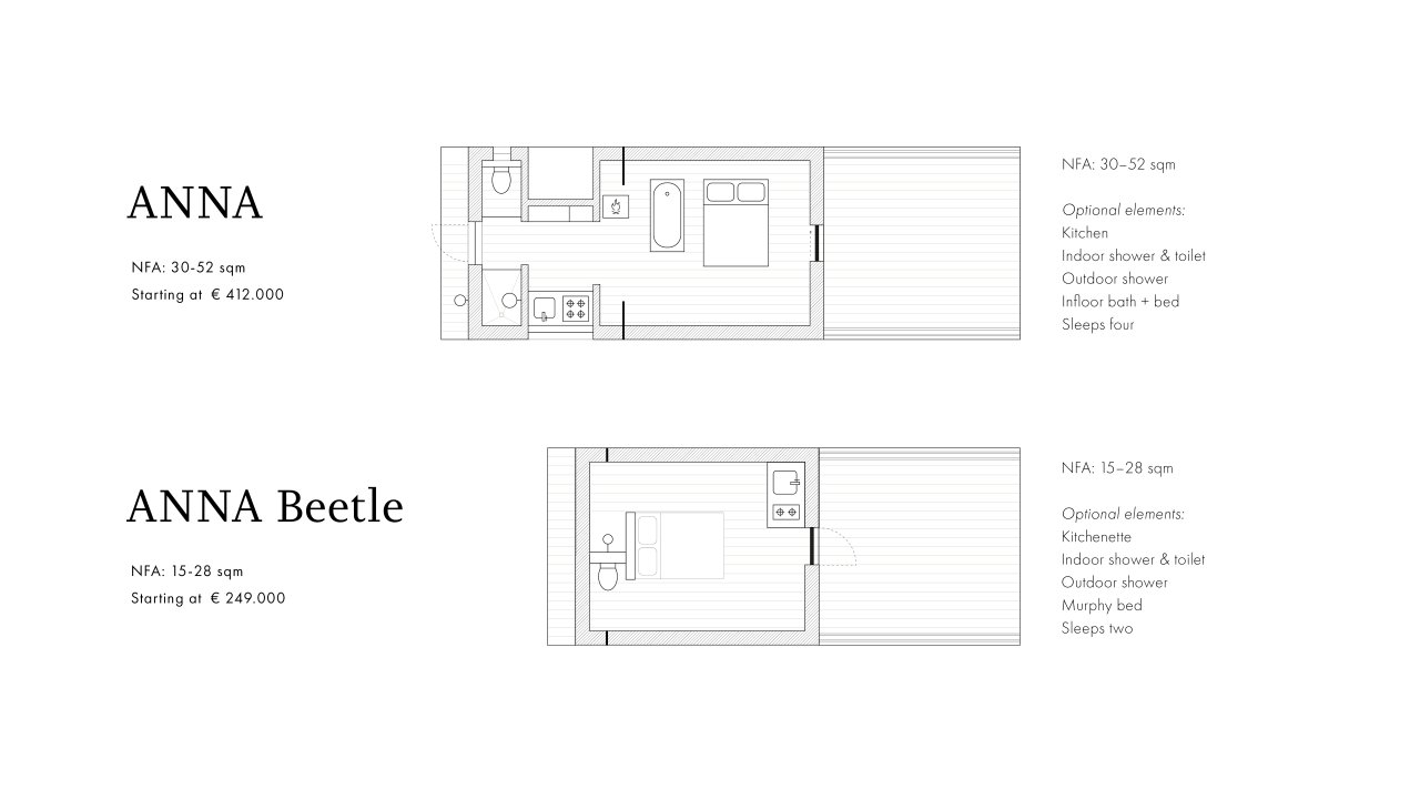 We have designed two kinds of ANNA cabins to meet a range of needs and sites.